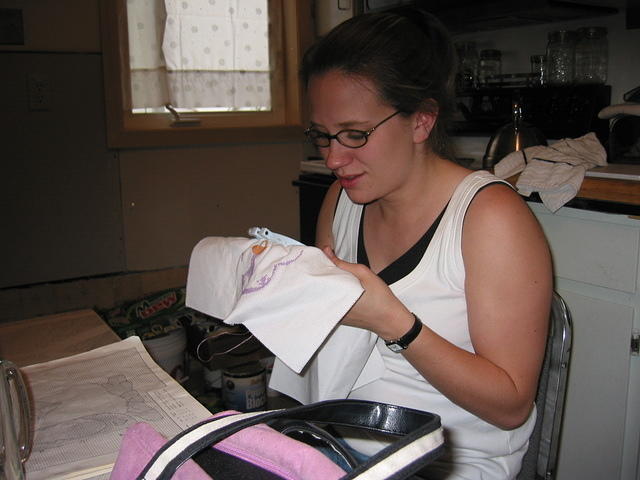 Krissy cross-stitching